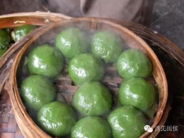 “菠菠粿”,也叫“清明粿”,是福州特有的清明節(jié)供品。它是用菠菠菜(生長于南方的一種野菜,可食,味甘,性涼,搗爛壓成汁呈青綠色)壓榨成汁,滲入米漿內(nèi)揉成粿皮,以棗泥、豆沙、蘿卜絲等為餡捏制而成的。造型比較簡單,菠菠菜的青綠色賦予菠菠粿以春天的綠意。清明節(jié)前后,福州家家戶戶都要做菠菠粿。