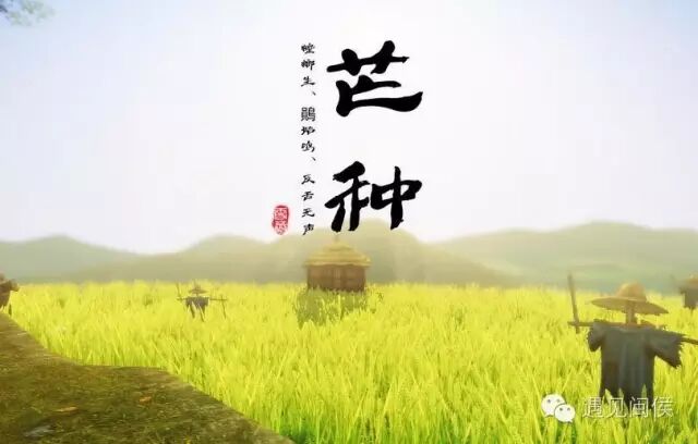 芒種是二十四節(jié)氣中的第9個節(jié)氣。“芒種”意即“有芒的麥子快收,有芒的稻子可種”,《周禮?地官?稻人》載:“澤草所生,種之芒種。”意思是說,澤草叢生的地方可種莊稼?!懊⒎N”用到節(jié)氣上,“芒”指波浪般被暑氣耀亮的麥芒,小麥成熟可收割,是“葉暗庭帷滿,涼散麥風(fēng)余”的時節(jié)。而“種”指稻谷,此時秧田車水,過時不能再種了,正所謂“麥秋桑葉大,梅雨稻田新”。
