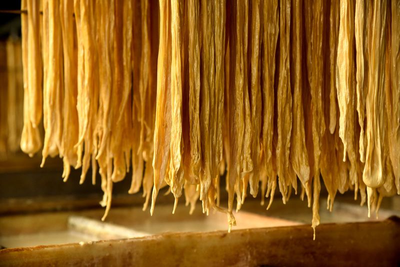 多年來(lái),洋里腐竹廠采用傳統(tǒng)生產(chǎn)工藝,精選北大荒黃豆,引山泉水加工,嚴(yán)格按浸泡、磨漿、煮漿、挑竹、曬烤、包裝等規(guī)程生產(chǎn),大部分工序仍堅(jiān)持傳統(tǒng)手工操作,產(chǎn)品豆香濃郁,嫩滑爽口,味道鮮美。如今,洋里腐竹廠生產(chǎn)的腐竹、豆皮等產(chǎn)品,主要供給沃爾瑪山姆會(huì)員店、麥德龍等購(gòu)物廣場(chǎng)銷售,并出口美國(guó)、日本、臺(tái)灣等國(guó)家與地區(qū)。新研發(fā)的黑豆腐竹因其獨(dú)特的工藝與營(yíng)養(yǎng)成分,近年來(lái)開(kāi)始走俏,深受顧客歡迎。